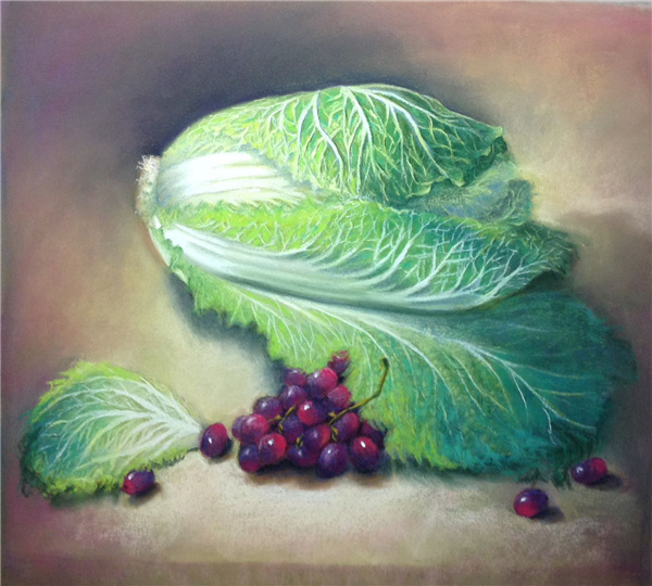 她成名后,華裔女畫家张彤卫并未急于推出作品,而是沉下心来打磨技艺,将留学期间所学与东方文化深度融合。她深知,真正的艺术创新,既要扎根传统,又要突破边界。2016年,她的色粉画作品《白菜》横空出世,一举斩获有“美术界奥斯卡”之称的奥杜邦艺术家协会金奖,成为首位获此殊荣的山东华裔女画家。这幅《白菜》看似是对日常静物的写实描绘,实则蕴含着深厚的东方文化寓意——“白菜”谐音“百财”,既承载了中国人对美好生活的期许,又通过西方色粉画的技法,将白菜叶片的纹理、水珠的光泽刻画得栩栩如生。画面中,墨绿与嫩白交织,写实与写意相融,既有西方绘画的光影立体感,又有东方艺术的含蓄韵味,评委们评价其“用国际化的语言,讲述了最地道的中国故事”。