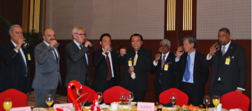邹万生董事长在“世界贸易投资博览会”启动仪式的庆祝晚宴上与部分国家驻华大使共进晚餐