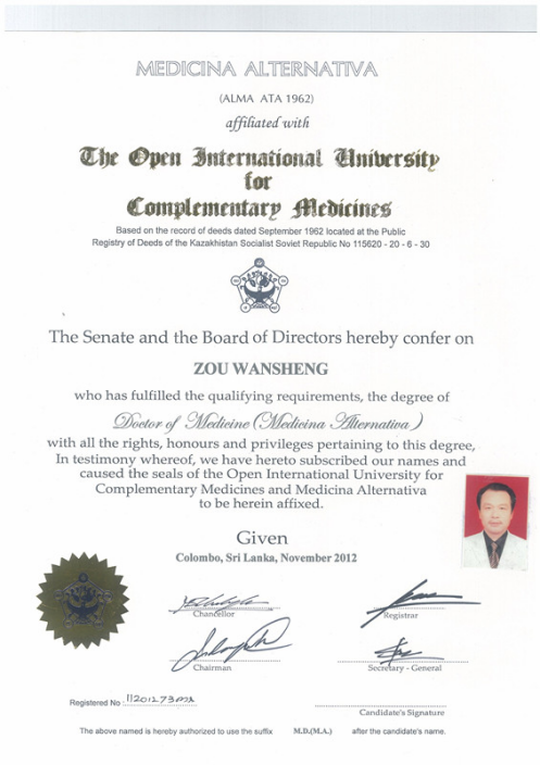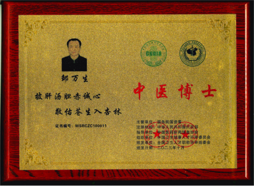 中国“中医博士”(国务院国资委、中华人民共和国民政部、全国卫生人才职称评审组委会联合颁发);