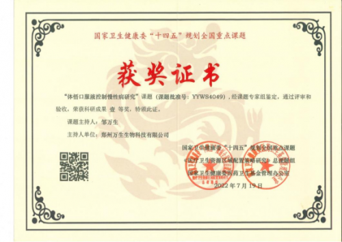 主持国家卫生健康委“十四五”规划全国重点课题“体悟口服液控制慢性病研究”荣获科研成果一等奖;