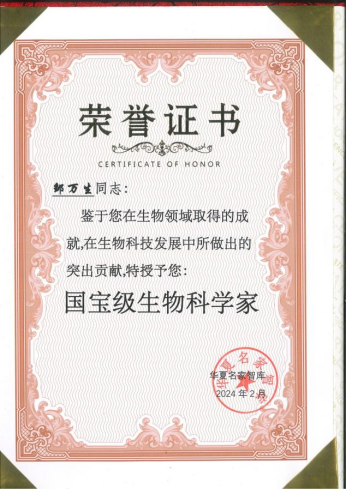 分别获得中医岐黄派“岐黄大医”和中医本草派“医圣传人”称号,先后获得“国宝级生物科学家”、“人民榜样”(中央组织部颁发)、“七一荣誉勋章”(中央宣传部颁发)、“国家功勋人物”、“先锋企业家”(中央宣传部颁发)、“中国楷模贡献人物”(中央宣传部颁发)、爱心大使等各项荣誉200多项。并被中科院收录进2024年“奋进新征程 建功新时代”挂历第六月。
