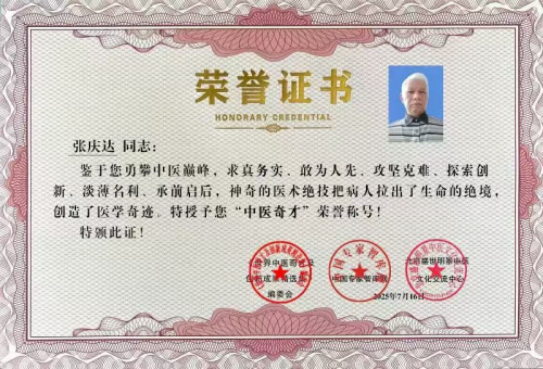 张庆达老师生于一九五二年十二月,在一九七三年七月毕业于江西省下垄矿五七高中,当年十二月下放农村接受贫下中农再教育七七年七月病退返矿,在县工商局做协议工作至七九年。八〇年元月,由下垄矿大集体招收为集体工,二〇一二年办了退休,几十年坚持自学中医中草药技术,为亲友治疗过一些疑难杂症,如骨癌,股骨头坏死,脑瘤,淋巴癌, 乳腺癌,胰腺癌,结直肠癌,肝癌,尿毒症,肾囊肿,癫痫精神分裂症, 穴位损伤,中风后遗症及类风湿乙肝转阴等疑难杂症,效果显著,让股骨头坏死病人得到快速缓解疼痛,短期内达到治愈的目的,能使渐冻症病人快速得到改善,得到亲朋好友好评,当地百姓都说老师在新城立脚是新城人民的福份!