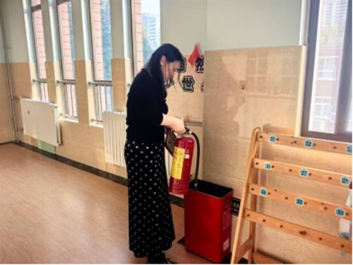 演练结束后,幼儿园组织教职工开展灭火器操作技能培训。教职工通过观看现场灭火器“提、拔、握、压”的正确使用方法,并逐一上手实操,熟练掌握灭火技巧。同时,各班教师对班级活动室、午睡室、教具柜等重点区域进行全面火灾隐患排查,仔细检查电器线路、消防设施、易燃易爆物品等,并用照片记录排查过程,确保不留安全死角。