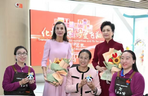 2025年11月12日,陪同西班牙国王费利佩六世来华进行国事访问的王后莱蒂西娅参观北京市残疾人服务示范中心。