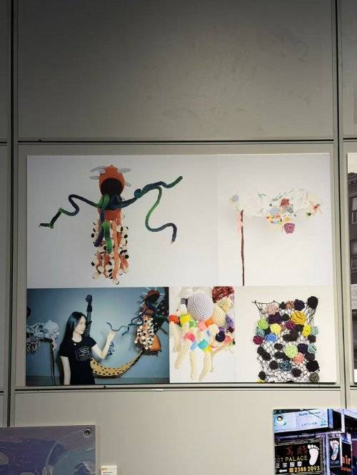 在李霈阳的这部作品介绍中讲到,此作品主要采用羊毛线、可循环尼龙线及铁丝作为原材料,通过钩编、抽褶与机织工艺的有机结合,塑造出极具象征意义的变异海洋生物形态。创作灵感源自中国核辐射专家在福岛事件前的研究成果。艺术家通过“蛇头章鱼”、“人骨鱼”、“金属轮胎”等超现实意象,构建出一个在核辐射影响下的反乌托邦海洋图景。作品巧妙借用了美杜莎神话中“无害生物转化为有毒物种”的隐喻,深刻揭示了辐射导致的陆地与海洋生物基因突变的生态危机。