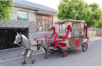 此后,熊克斌又研发了一匹机械马。不仅外形非常逼真,四肢也很灵活。“这马不仅不用吃草,还能 拉着喜车跑。 ”虽然每个发明的背后都要经历无数次的失败,每次失败都意味着耗费大量精力和资金, 可谈及这些发明,熊克斌的语气便充满笑意和得意。“这匹机械马,我最满意的地方就是一条马腿有8个关节,4条一共是32个,我用一个电机带动了32个关节同时工作,还能彼此协调。这项技术以后可以应用 在众多工业领域当中。”如今,熊克斌的机械马已经在朋友圈广泛传播,还有旅游景点与他洽谈合作; 自 己的发明能够得到认可,便是熊克斌大的欣慰。