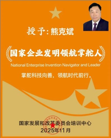 祝贺熊克斌获得由国家发展和改革委员会培训中心评选颁发的“国家企业发明领航掌舵人”奖项!这一荣誉不仅是对他在企业发明领域卓越贡献和引领能力的高度认可,也体现了他在推动国家企业事业发展中所发挥的重要作用。作为“国家企业发明领航掌舵人”,他不仅是行业的佼佼者,更是未来企业发展的引路人,肩负着推动企业发明传承与创新。