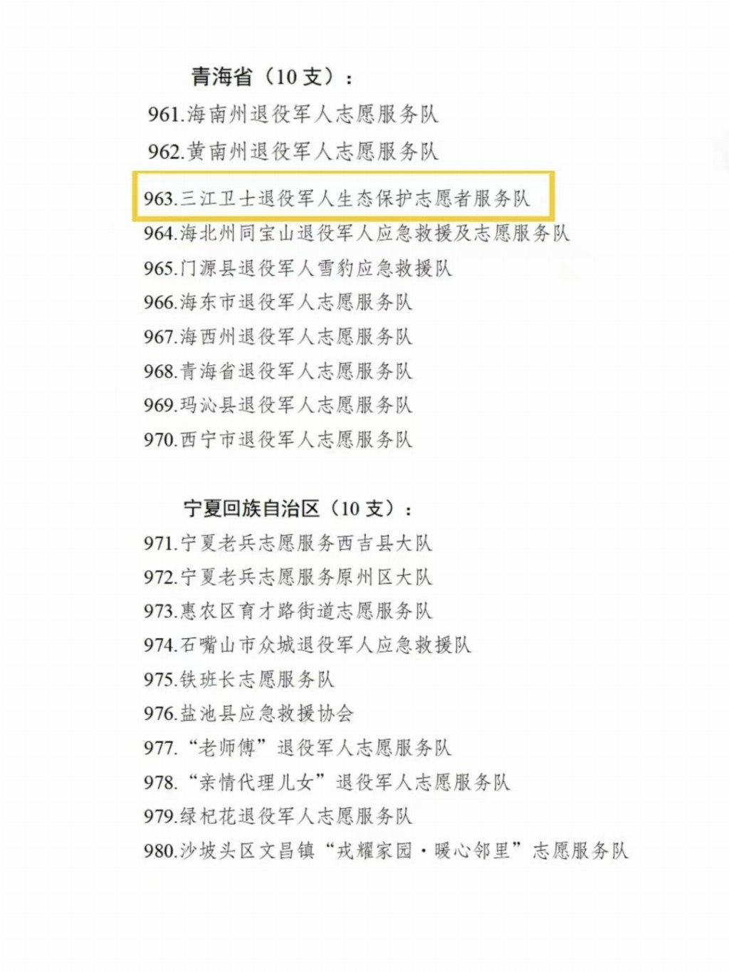 该队的“生态保护 高原先锋”项目,入选2024年度全国最佳志愿服务项目展示名单,同时也是全国1000支“退役军人守护家园志愿服务队”之一。