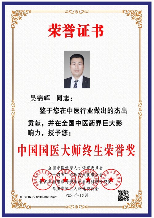 谨此恭贺吴锦辉先生!愿他继续以国医大师的责任与担当,引领中医药产业高质量发展,为健康中国建设贡献更多力量!