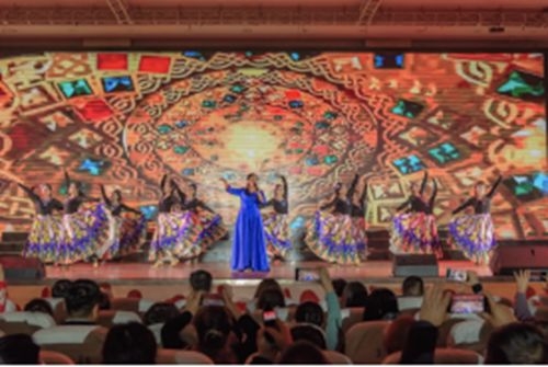 男声合唱《画里胡杨》不但歌颂了胡杨“生而千年不死,死而千年不倒,倒而千年不朽”的精神内核,更勾勒出了荥阳人“质朴、坚韧、敢拼、敢赢”的精神风貌。古筝《天山之歌》的每一个音符都饱含生命力与感染力,生动彰显国乐之美,传递昂扬向上的精神力量。舞蹈《永远的胡杨》,少年们的舞姿饱含热情和生命力,展现出的胡杨之美与中华民族“顽强拼搏、自强不息”的优秀精神同频共振。情景诗朗诵《胡杨立处是春风》更是将演出推向高潮,朗诵者们饱满的情感,铿锵的语调,字字句句都凝聚着荥阳人的拼搏汗水,引发全场观众强烈共鸣。演出还通过现场采访与视频呈现,展现了在荥阳工作、生活的新疆维吾尔族群众的真实故事,传递民族团结深情,唱响中华民族一家亲的时代赞歌,为观众呈现了一堂精彩纷呈的“艺术+思政”公开课。