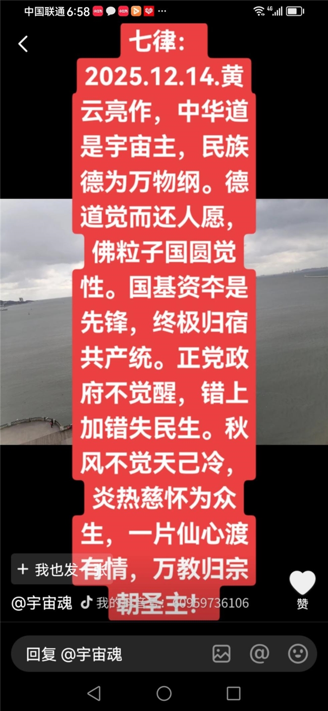 值此黄云亮先生醒世大作《宇宙魂》正在出版之际,黄先生又要我能为佛粒子再说几句话,作为佛粒子研究所的研究人员,深感义不容辞,责无旁贷,仅以佛粒子的开发意义致函中共统战部、全国政协秘书处、国务院参事室,并请诸位专家和学者批评指正。其实我在该书的前言后语中已对佛粒子的功能、意义及开发利用的价值做过简介,甚至对达尔文的进化论进行了贬斥和否定,由于我国是一个唯物论的国家,一提起“佛”字就谈虎色变,误认为这是封建迷信,一概否定,殊不知这是一项伟大的科研成果,是人类历史上破天荒的重大发现。一旦国家采用,并委托给统战部,我们立即向诺贝尔评审委员会申报嘉奖。