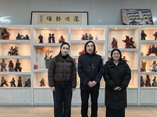 来到张振福陶瓷泥塑工作室,大学生们瞬间感受到了丹钧文化的呼吸,河南省省级非遗郸城泥塑第五代传承人张振福大师运用老子炼丹技法,让泥人穿上丹钧衣,局部抹釉,一件作品着不同的釉色,烧制温度1360度,作品既有泥人的神韵、又有丹钧窑变的神奇色彩。在釉色艺术上,他的釉面并非单调的色块,而是在高温窑变中自然流淌,形成星辰璀璨般丰富奇幻的结晶肌理。色彩在紫红中透出深蓝,在蓝紫中又泛出金光,变幻莫测,出神入化,达到了丹钧艺术的至高境界,张振福丹钧陶瓷呈现出一种既古朴典雅又震撼人心的视觉盛宴,他把烧制丹钧陶瓷的窑口命名“丹成窑”。