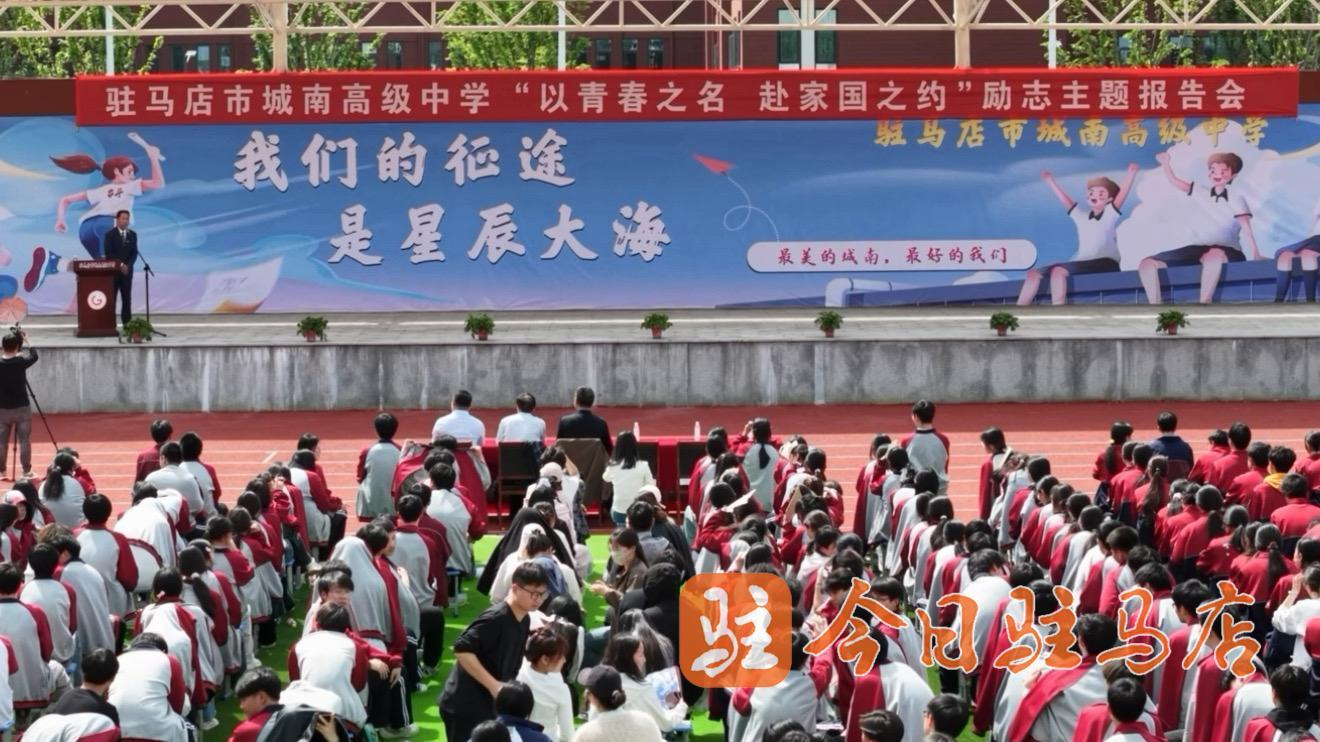 4月17日下午,驻马店市城南高级中学体育场内,近2000名师生、家长齐聚一堂,一场以“青春之名,赴家国之约”为主题的红色故事报告会在这里举办。