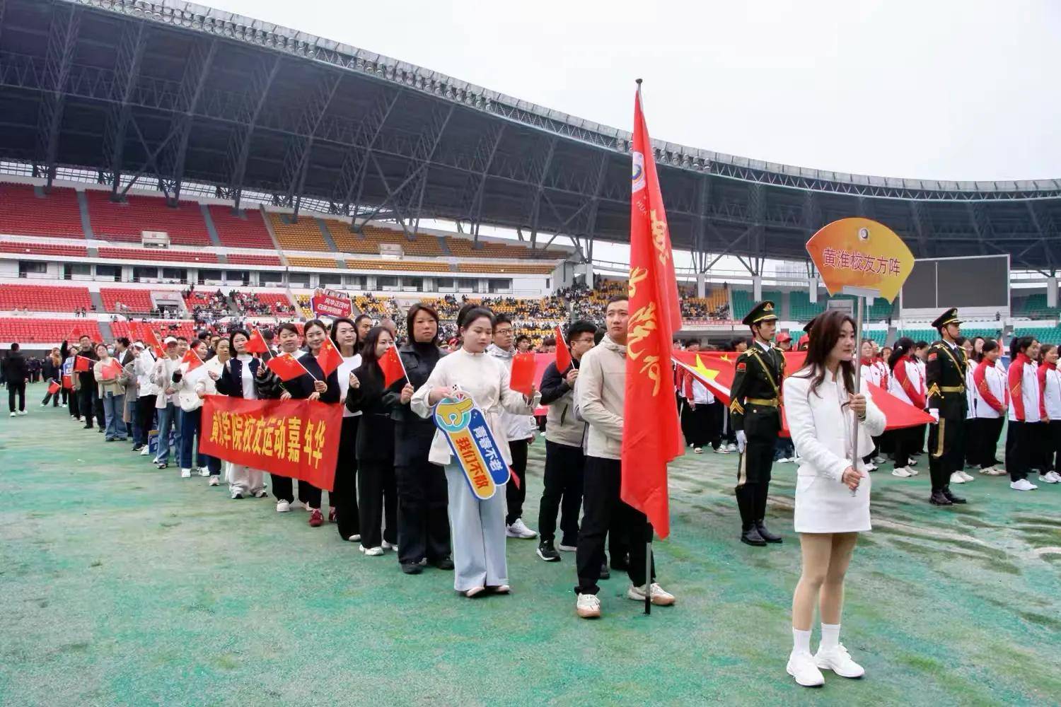 草长莺飞竞逐梦,绿茵场上展雄姿。4月22日上午,黄淮学院第二十二届运动会在驻马店市体育中心隆重开幕。来自各行各业的60余名校友怀揣对母校的深情眷恋,重返校园以昂扬姿态亮相开幕式,共贺运动盛会。