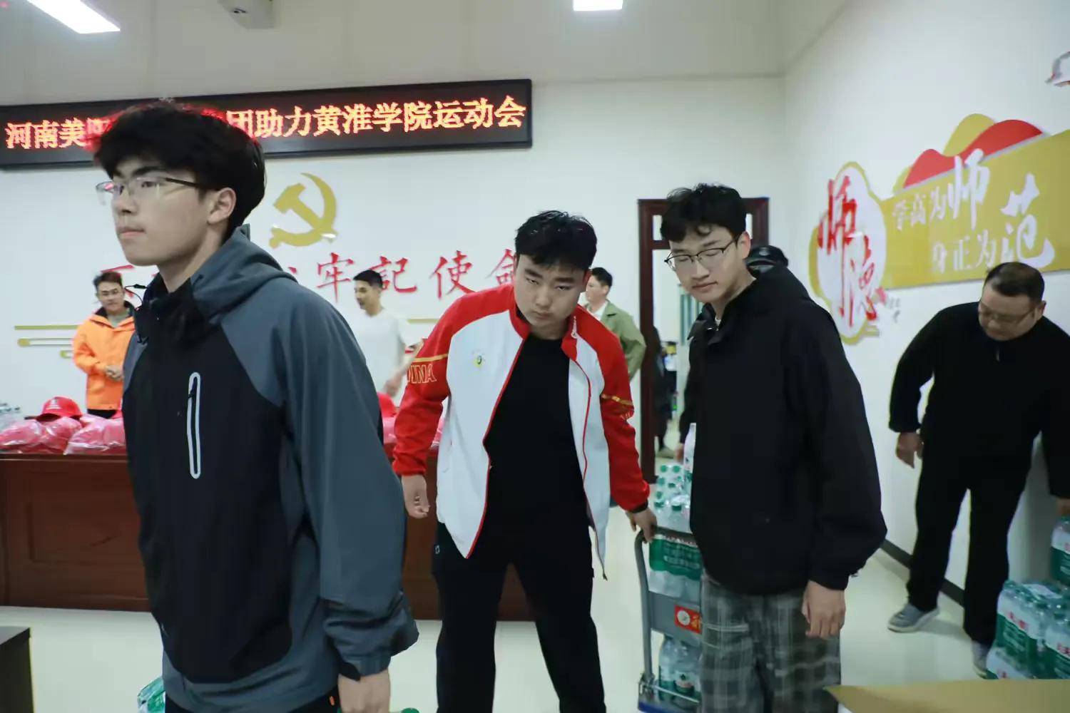 爱心赋能青春,携手共筑未来。2026年4月20日下午,河南美阳新能源集团李总在体院学院校友会秘书长邵新强的陪同下,赴黄淮学院体育学院为此次校园盛会爱心赞助100箱矿泉水和300顶裁判的帽子,助力黄淮学院2026年春季运动会举行。此次捐赠为运动会注入坚实物资保障,也彰显了企业深耕实业、回馈教育的社会担当,为校企深化合作搭建了坚实桥梁。