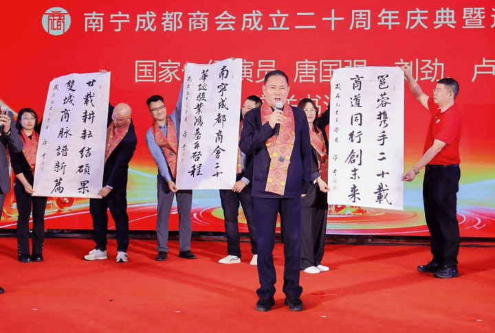二十载春华秋实,二十载同心致远。南宁成都商会成立二十周年庆典暨迎春团拜活动的圆满举行,不仅回顾了辉煌历程、表彰了先进典型,更搭建了合作桥梁、凝聚了发展共识。未来,南宁成都商会将继续秉持公益初心与发展使命,以更昂扬的姿态深耕川桂合作,以更务实的行动践行社会责任,为推动两地经济社会高质量发展书写更加绚丽的篇章。