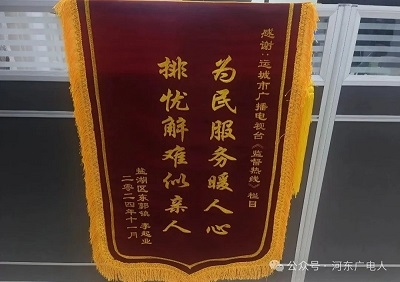 11月18日早上,盐湖区东郭镇东郭村85岁的李先生在孙子的搀扶和陪伴下来到我台,将一面写着“为民服务暖人心、排忧解难似亲人”的锦旗送给《监督热线》节目组,这是一面拒绝了多次都没拒绝了的锦旗。