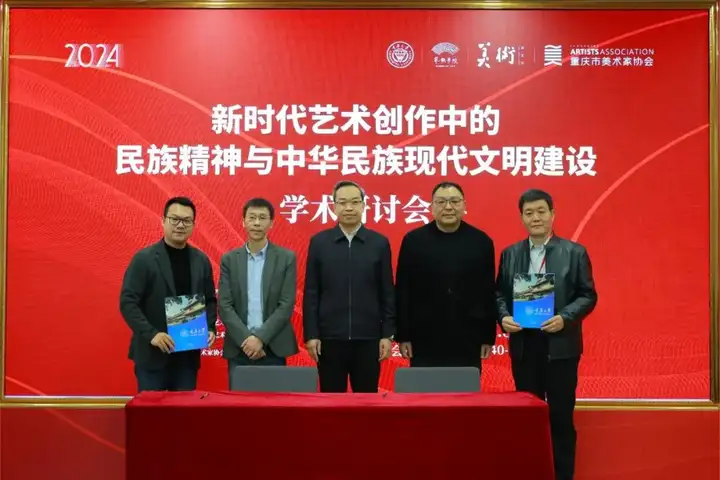 2024年11月30日,“新时代艺术创作中的民族精神与中华民族现代文明建设”学术研讨会在重庆大学虎溪校区顺利举行。来自中国文联出版社、北京画院、清华大学、上海交通大学、南京大学、四川大学、西南大学、西北大学、首都师范大学、黑龙江大学、广州美术学院、西安美术学院、湖北美术学院、四川美术学院、山东艺术学院、青岛大学、兰州财经大学等全国重要院校和机构的知名专家、青年学者参加会议。研讨会由重庆大学艺术学院、《美术》杂志社联合主办,国家社科基金艺术学重大项目“习近平文化思想中的艺术观研究”课题组承办,重庆市美术家协会支持。重庆大学副校长、人文学部主任饶劲松,重庆市美术家协会副主席、秘书长魏东出席并致辞。开幕式由重庆大学艺术学院党委书记蒋华林主持。