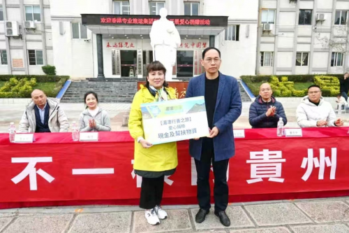 11月30日,香港专业旅运集团在湄潭中学开展了爱心资助捐赠活动,香港专业旅运集团代表现场向湄潭中学贫困学生捐赠价值两万余元的书包、排球和文具等学习生活用品和两万元现金,学生们为爱心人士佩戴上了象征荣誉的红领巾并现场交流学习简易粤语,现场热情高涨。