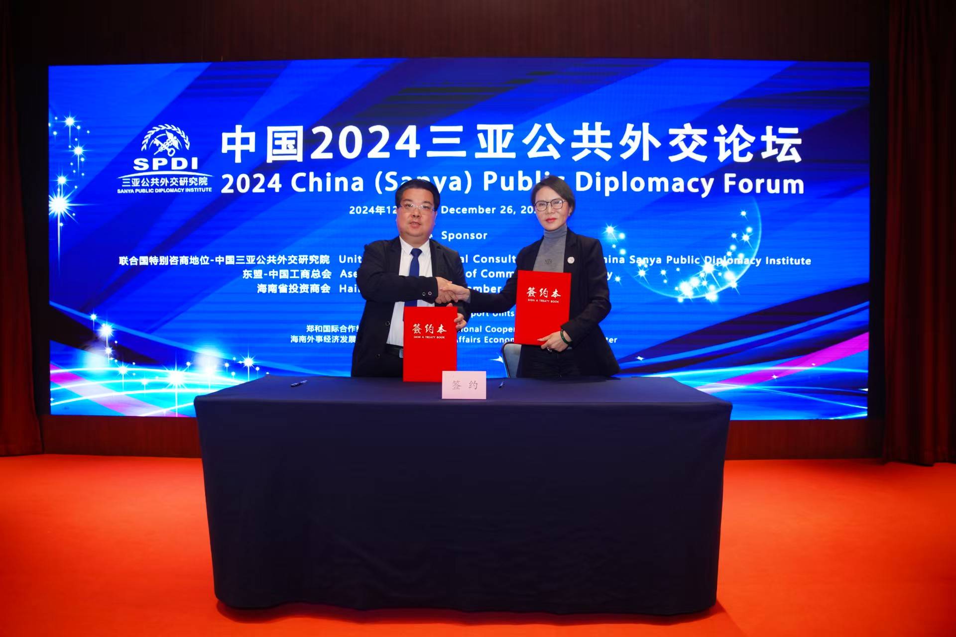 论坛上,三亚公共外交研究院与海南省投资协会签署了战略合作协议,将共同讲好中国海南故事,推动公共外交事业健康发展。