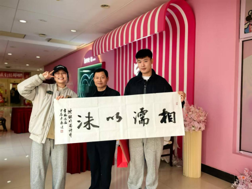 仪式尾声,区老干部书画协会袁健老师挥毫泼墨,书写祝福;秦氏剪纸世家秦求老师送上独具望城特色的“蝴蝶嬉金瓜”精美剪纸,寓意吉祥。新人们纷纷与老师们合影留念,记录下这珍贵的时刻。
