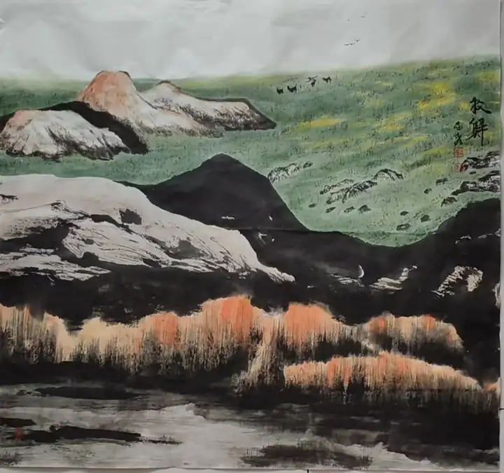 4. 2024年中华腾飞全国书画艺术作品大展赛美术组金奖,获奖作品《碧水丹青》