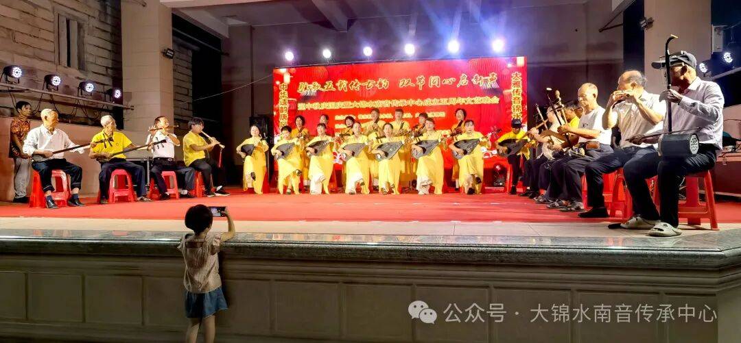 弦歌五载传古韵,双节同心启新声。2025年10月5日晚上在惠安县螺阳镇锦东村戏台,举行迎中秋庆国庆暨大锦水南音传承中心成立五周年文艺晚会。