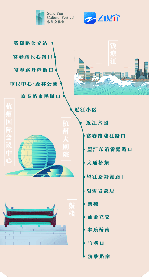 此次活动精选了两条具有代表性的公交线路——35路和71路。从吴山广场的历史沉淀,到湖滨、钱江新城的现代繁华,再到德寿宫、河坊街的古韵悠长,如同两条文化纽带,连接起了杭州的过去与现在。无论你是都市的匆匆行者,还是寻觅古迹的旅人游客,都能在这辆专列巴士上,找到属于自己的宋韵故事。