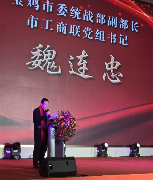 宝鸡市委统战部副部长、市工商联党组书记魏连忠发表讲话。魏副部长肯定商会过往成就同时,更激励商会要以十岁生日为起点,进一步团结和凝聚会员力量,重视新形势、担当新使命、使出新干劲、再续新成就,坚定发展信心,全面推进商会和会员企业高质量发展,进一步打造高水平的政企之桥、会员之家,为致力宝鸡经济社会高质量发展做出新的更大贡献。