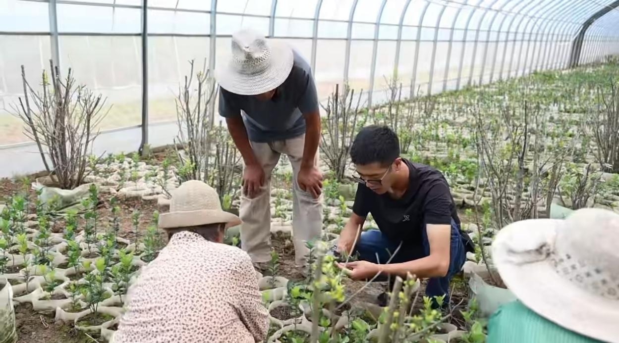 导读:清晨的阳光刚漫过洪井村的山脊,四座日光温室大棚里已传来簌簌声。村民董三虎攥着修枝剪穿梭在苗木间,晨露还挂在叶片上,他额角已渗出细汗。以前揣着干粮跑外地,一年到头见不着娃。现在大棚里修修枝、浇浇水,一天100多块现结,傍晚还能回家给老伴做做饭。